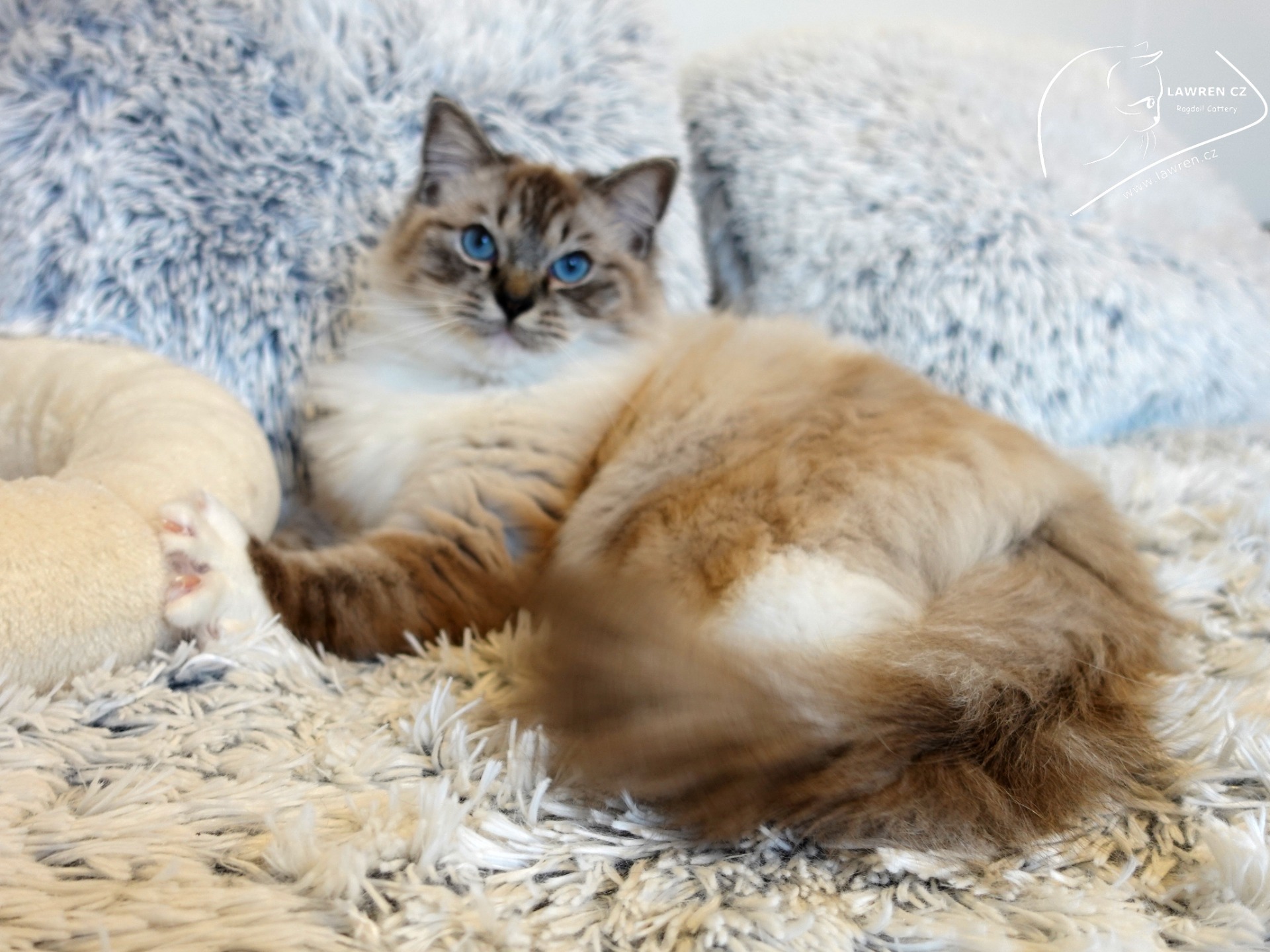 Do koček Ragdoll jsme se zamilovali pro jejich úžasnou nekonfliktní povahu, majestátní vzhled a jejich modrá očka. Jsou to velmi společenské kočičky se zvídavou a hravou povahou, jsou přátelské a oddané svým majitelům. Nemají sklony k agresivnímu, útočnému chování, v případě ohrožení se Ragdoll raději stáhne do ústraní, než aby použil drápky a zuby. Máme dvě děti a plemeno Ragdoll k nim byla skvělá volba.