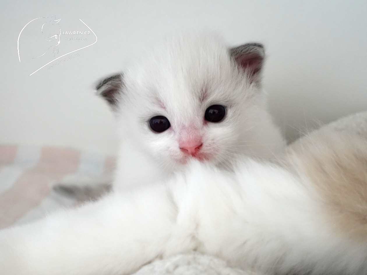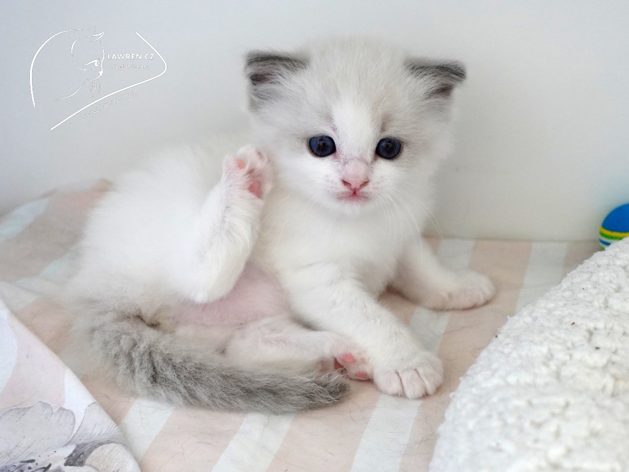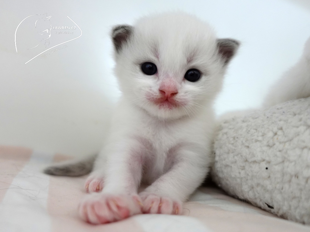 Z tohoto vrhu máme tedy jen jednu blue bicolor kočičku, která dostala "pracovní" název od syna Bělinka a ten už jak to bývá zůstal.